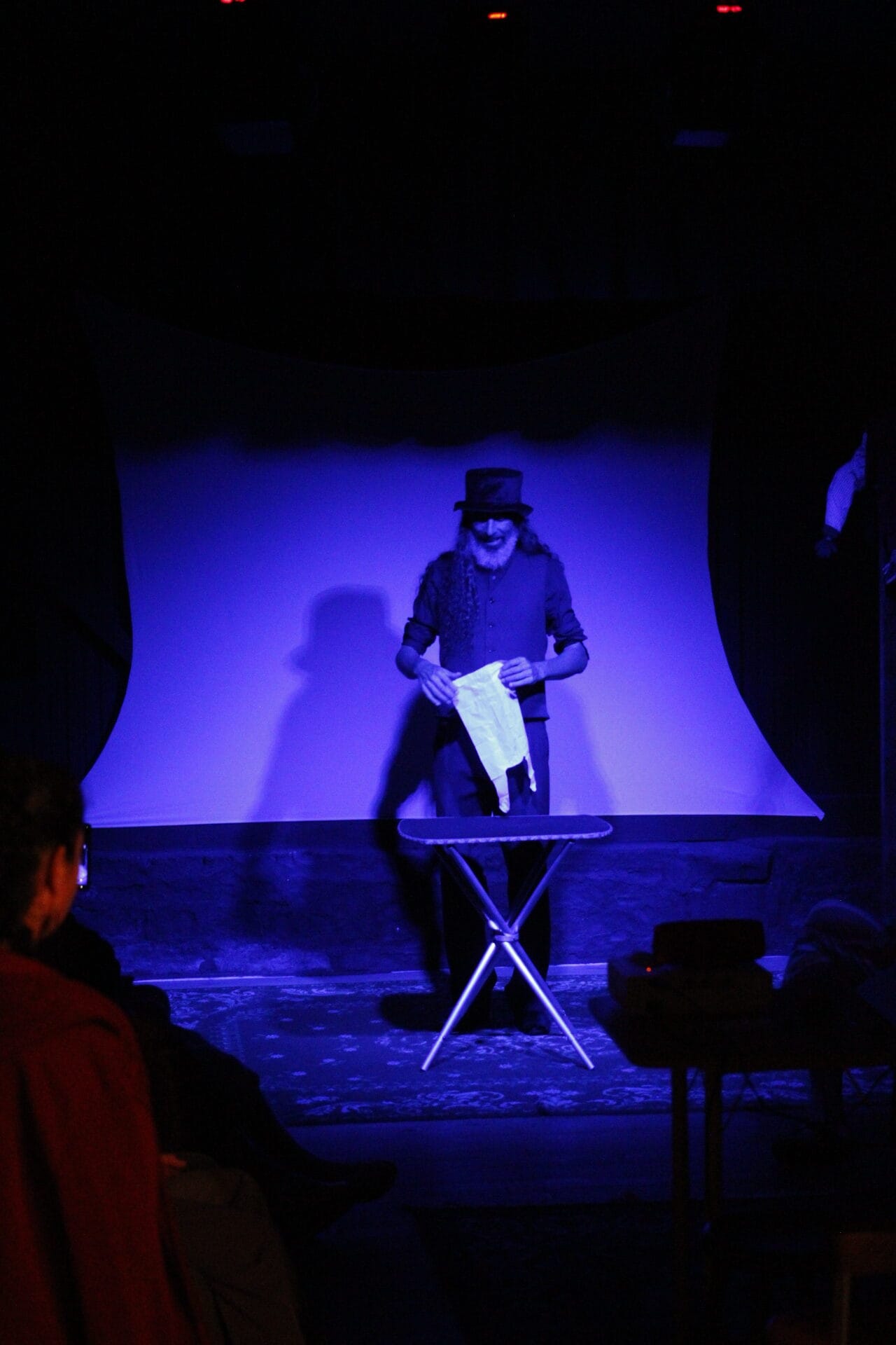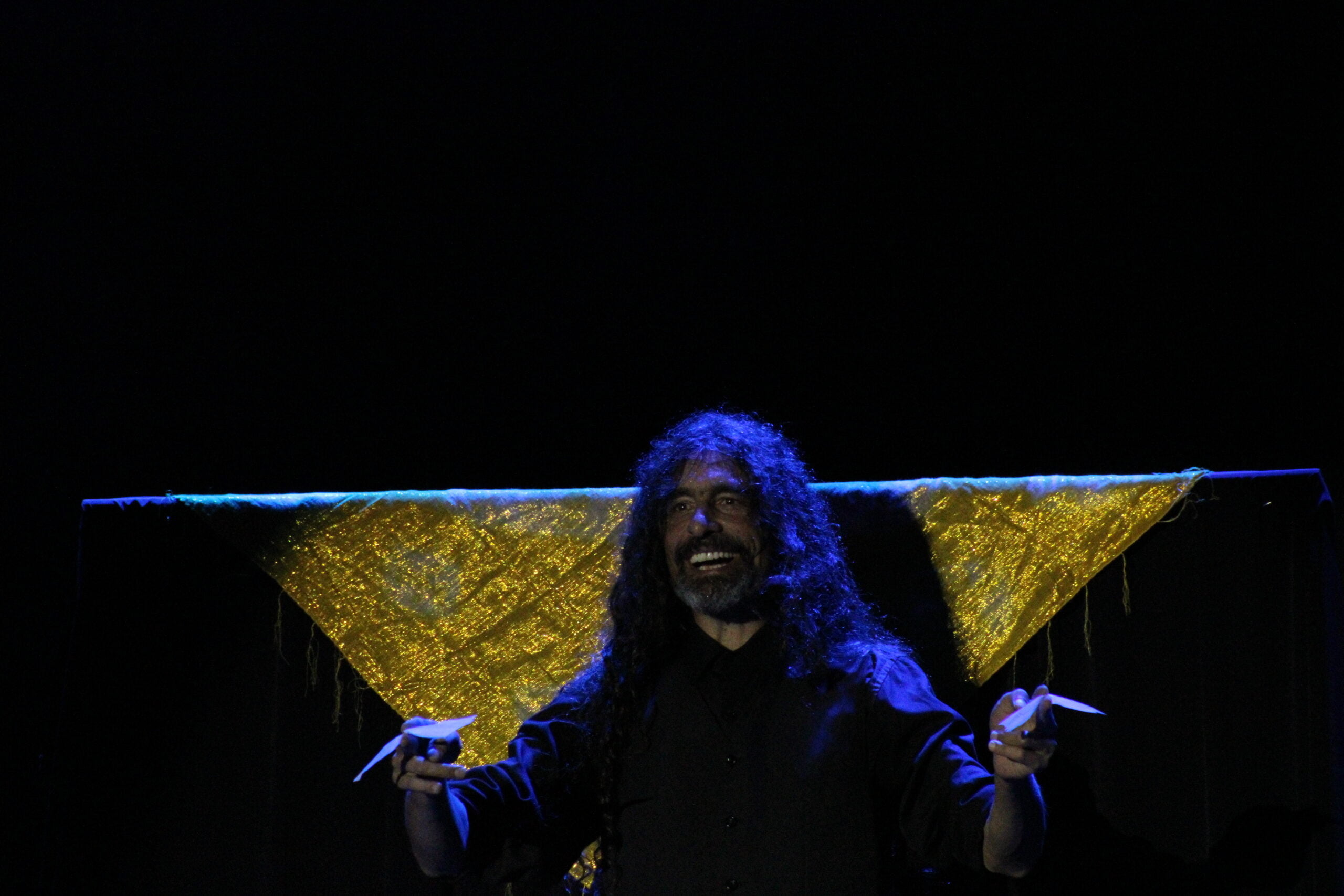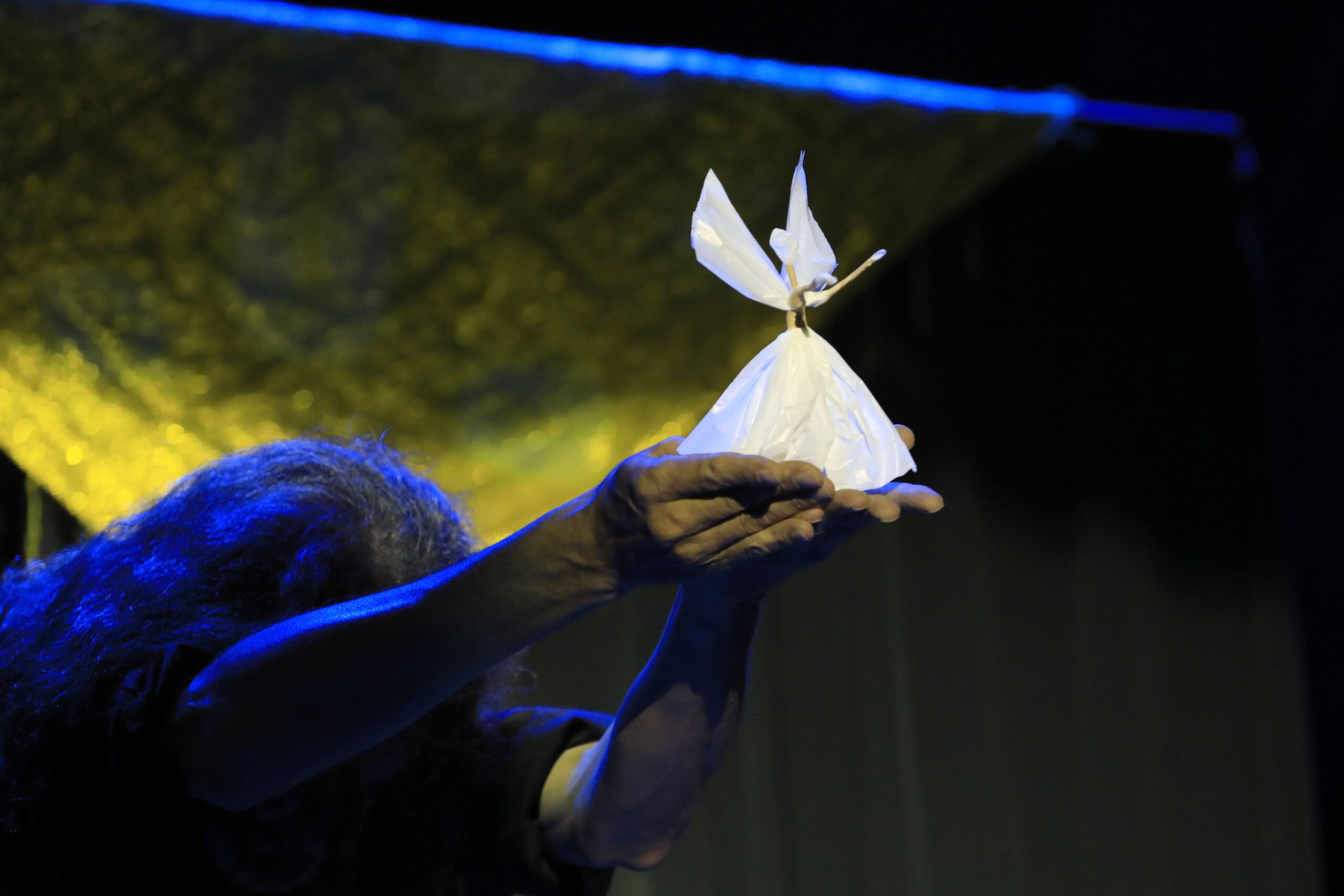 Equipe: 2 a 3 pessoas (artista + apoio técnico e/ou luz/sonorização local).